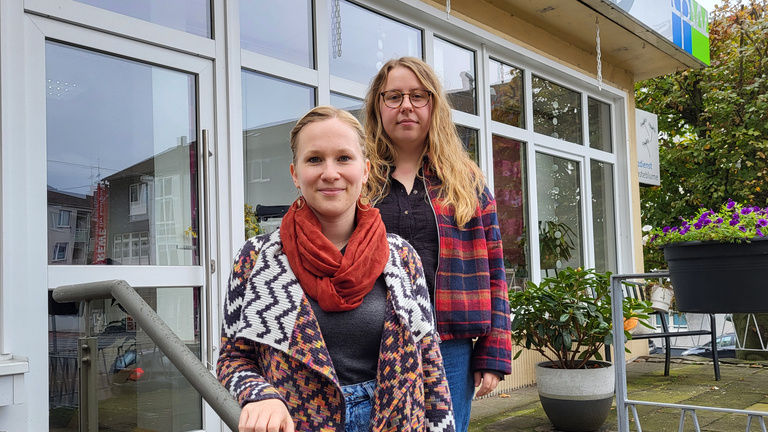 Anna Wessel, Koordinatorin des Hospizdienstes Pusteblume der Diakonischen Altenhilfe Wuppertal gGmbH und Lena Söhnchen, Streetworkerin in der Diakonie Wuppertal - Soziale Teilhabe gGmbH